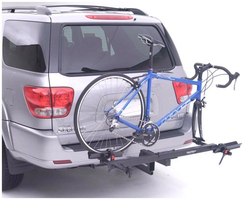 - Heavy-duty rack mounts on 1.25-inch hitch, holds 2 bikes- Quick-release 9-mm fork mounts and rear-wheel trays with ratcheting straps